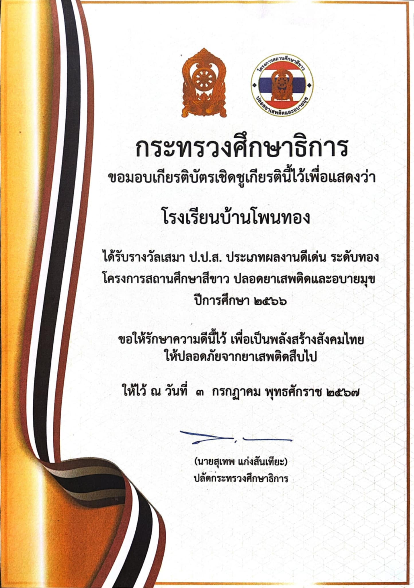 กิจกรรมสถานศึกษาสีขาวโรงเรียนบ้านโพนทอง